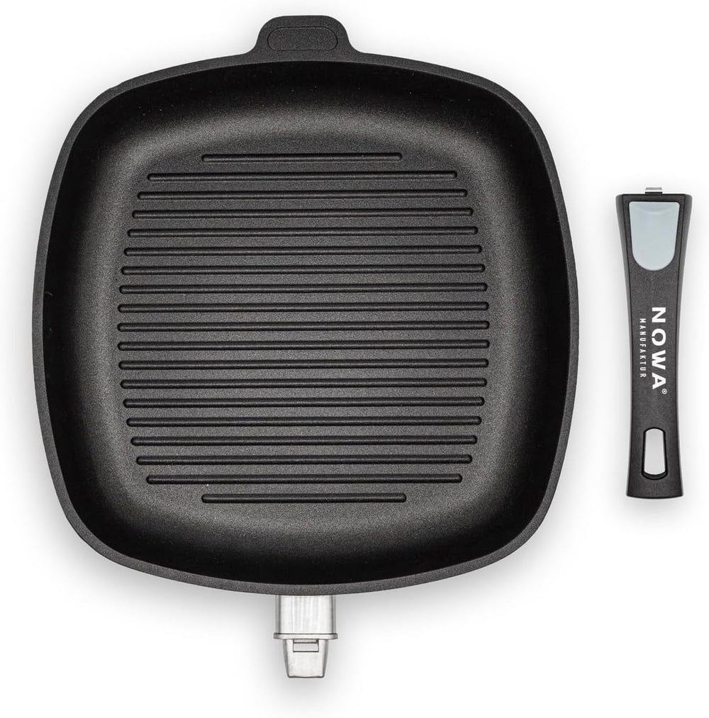 NOWA Aluguss Grillpfanne, LxBxH 28x28x4,5 cm, Abnehmbarer Griff, backofenfest bis 300 °C, Antihaft b