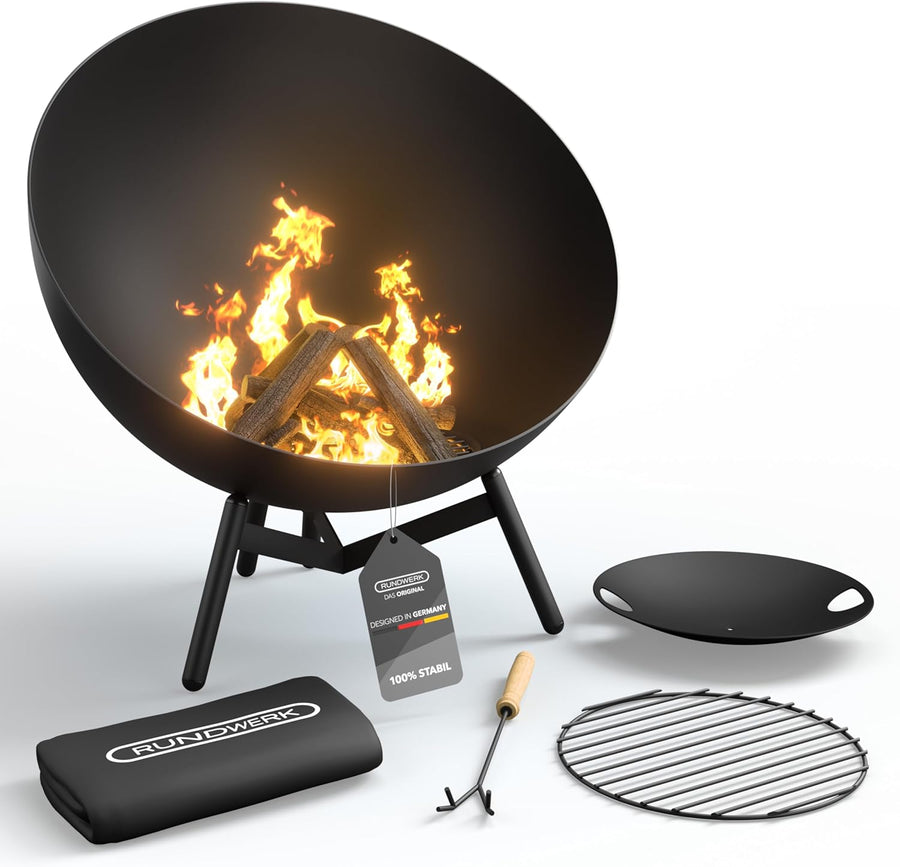 Feuerschale, Feuerschale mit Funkenschutz, Feuerschalen für den Garten, Feuerkorb mit Grillrost,Sech