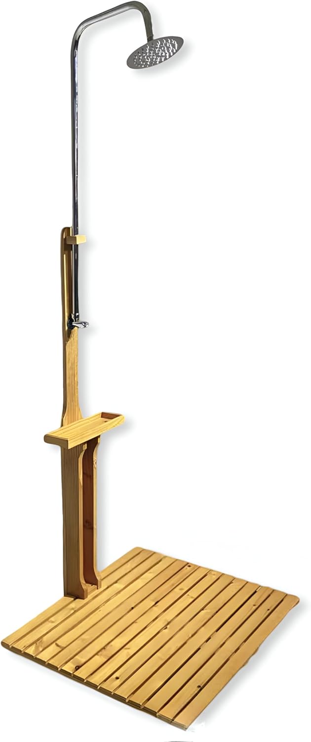 UISEBRT Gartendusche Aussendusche aus WPC und Aluminium - Mobile Bodendusche Solardusche Campingdusc