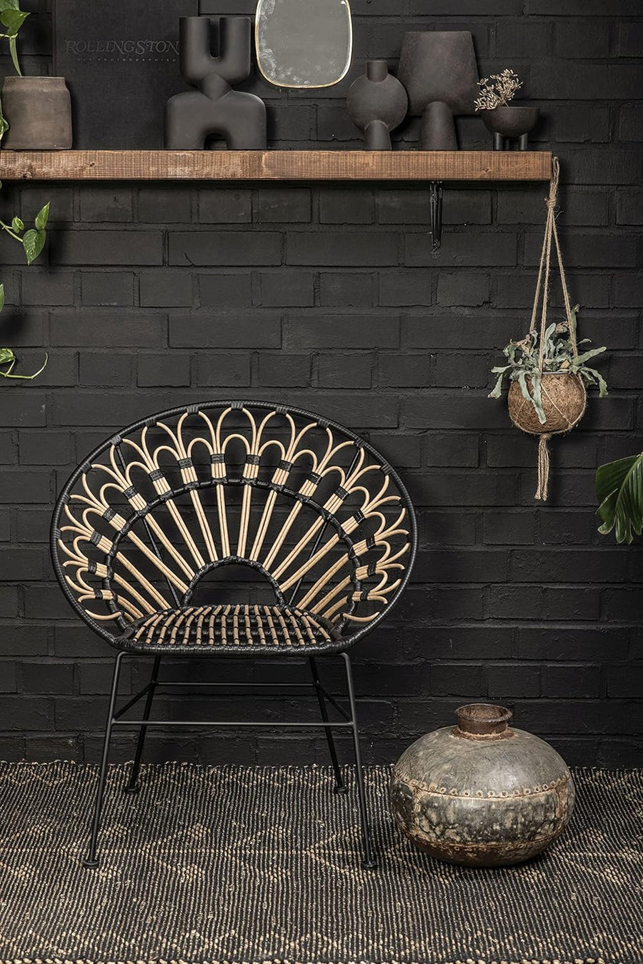 Vintagehaus Gartensessel Hacienda Rattan Peacock In/Outdoor Black Gartenstuhl