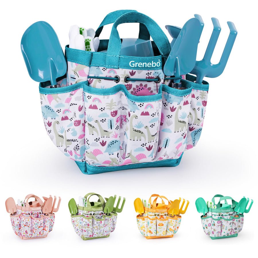 Grenebo-Gartenspielzeug für Kinder, inklusive Metallkelle, Pflanzschaufel, Gartenhut, Rechen, Schürz