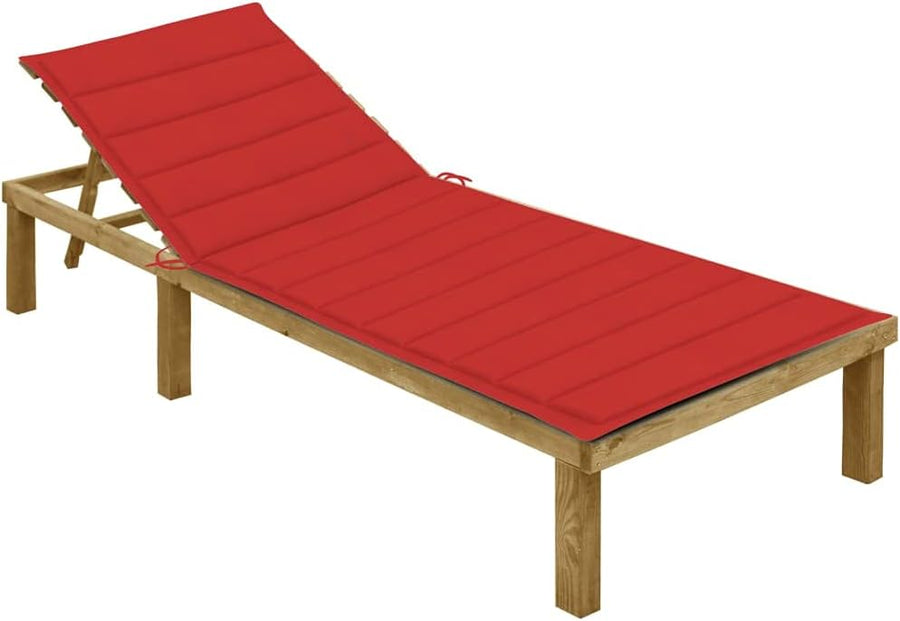 vidaXL Kiefernholz Imprägniert Sonnenliege mit Roter Auflage Gartenliege Relaxliege Holzliege Liege