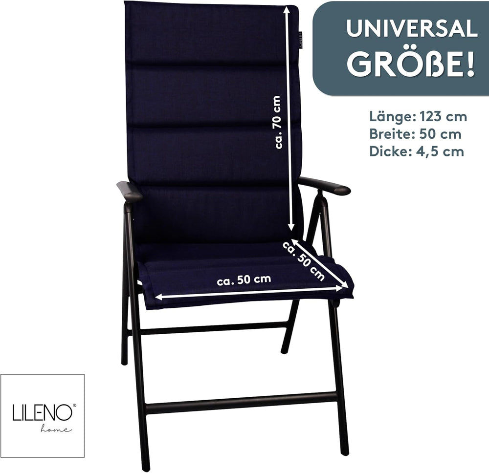 LILENO HOME Gartenstuhl Auflagen als [2er Set - Hochlehner] in Dunkelblau - Bequeme Liegen als Sitza