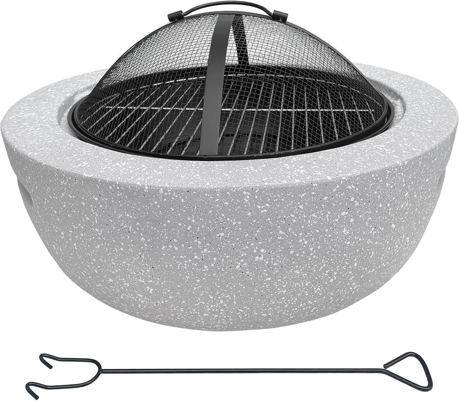 Feuerschale 2-in-1 aus Kunststein in Granitoptik | ca. Ø 60 cm | inkl. Grillrost, Schürhaken & Funke