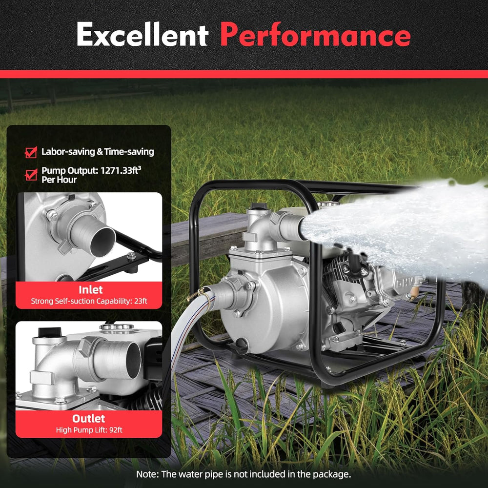 BITUXX® 1,7 PS Benzin Wasserpumpe Motorpumpe Garten Benzinwasserpumpe Gartenpumpe Wasser Pumpe Förde