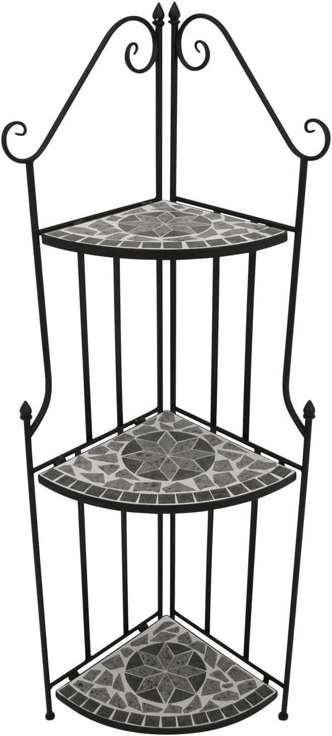 DEGAMO Gartenregal Eckregal Siena 38x36x142cm, Gestell Metall schwarz, Regalböden aus Keramik in Mos