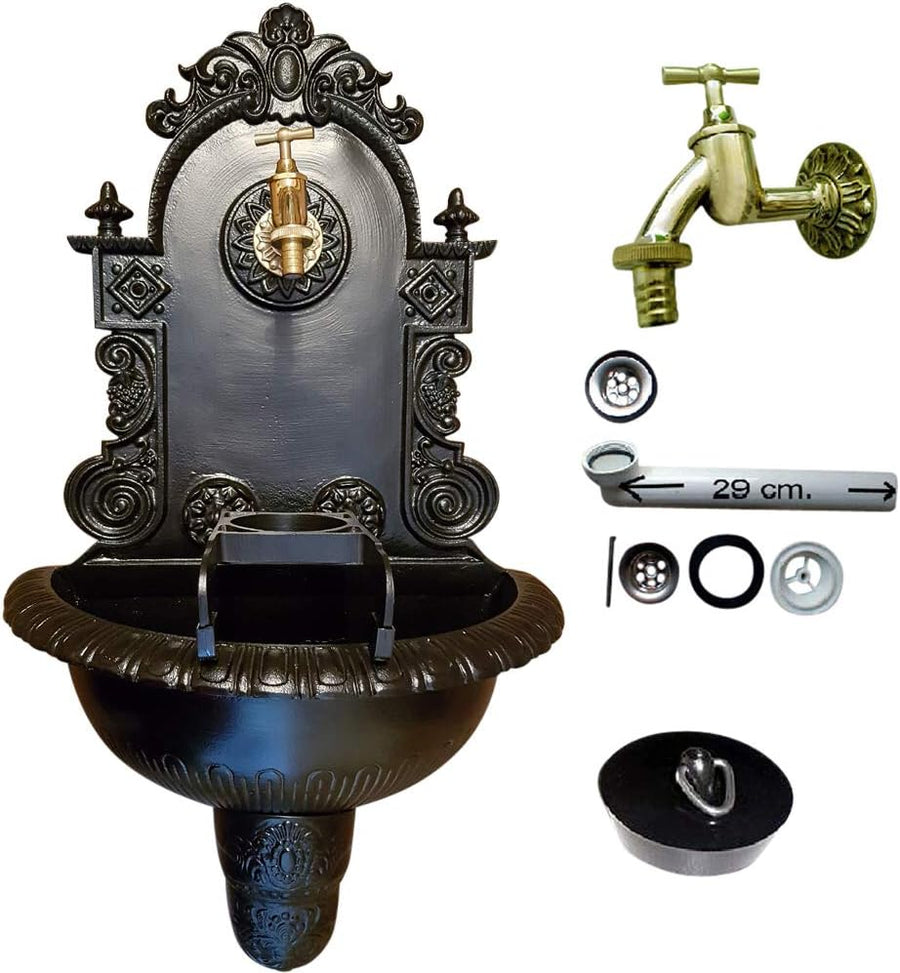 Wandbrunnen Graf von Gerlitzen Blumenampel Alu Bassena Wand Brunnen Kran Ablauf Schwarz (ANJA) MG1-F