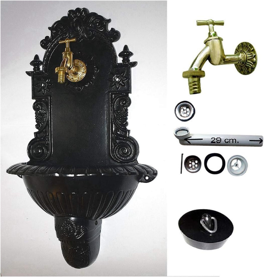 Wandbrunnen Graf von Gerlitzen Blumenampel Alu Bassena Wand Brunnen Kran Ablauf Schwarz FOU2-B