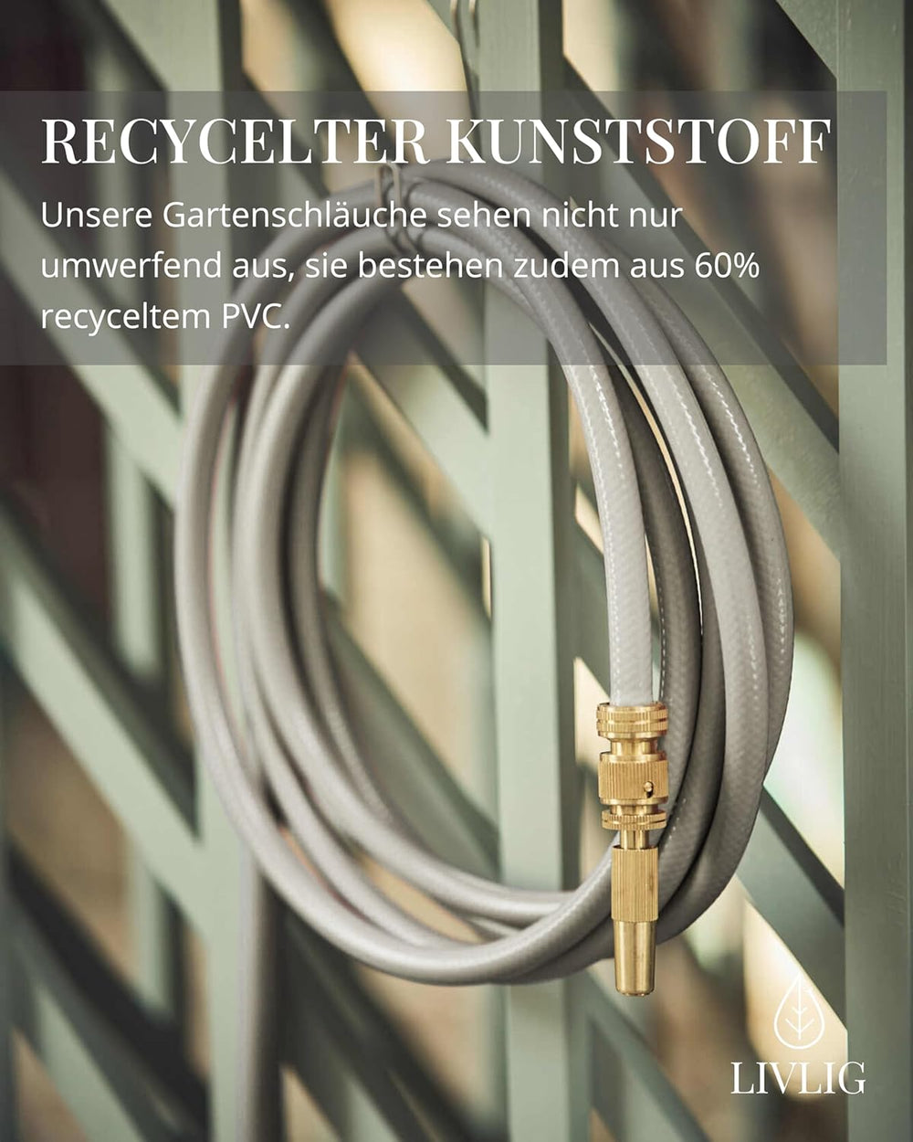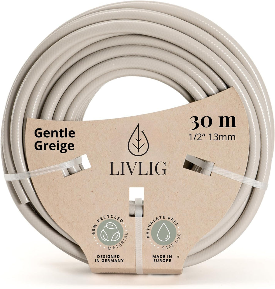 LIVLIG Gartenschlauch 30m, Gartenschlauch 1/2 Zoll Made in Germany, Wasserschlauch 30m aus recycelte