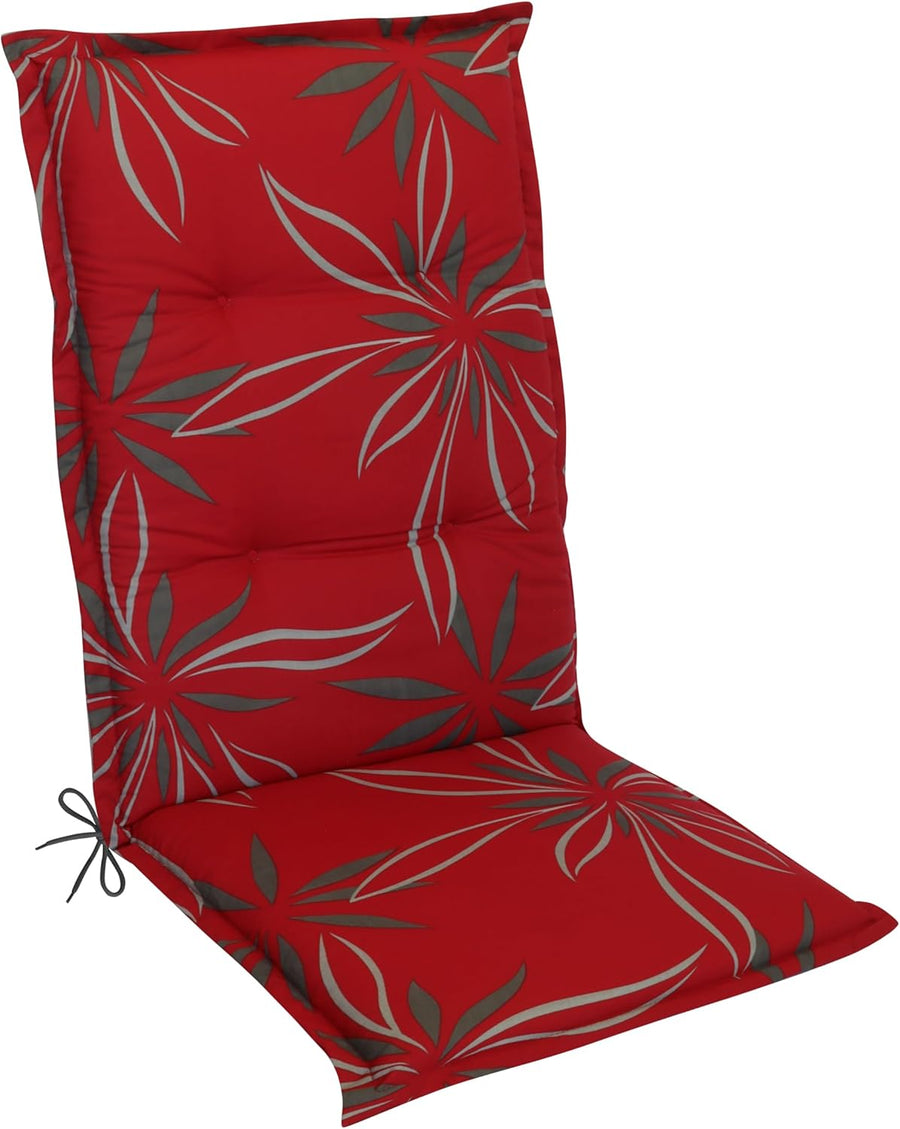 DILUMA Hochlehner Auflage Naxos für Gartenstühle 4er Set 118x49 cm Blume Rot - 6 cm Starke Premium S