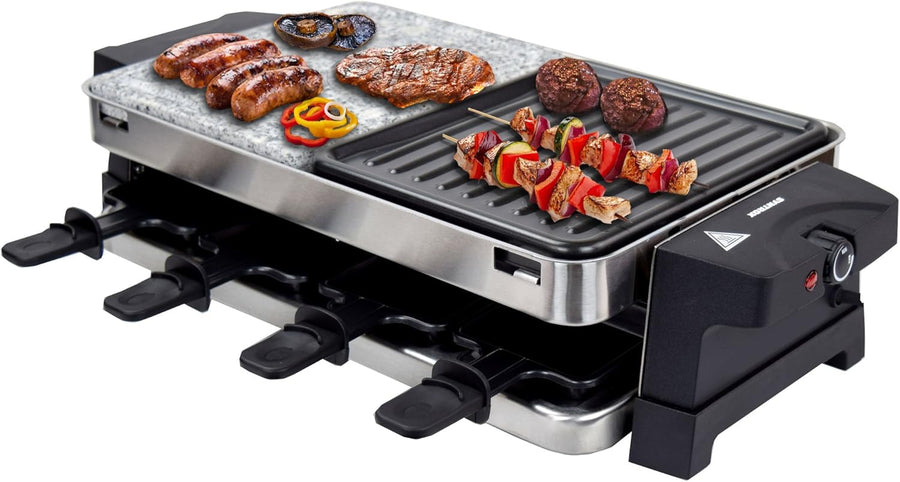 Syntrox Germany Edelstahl Design Raclette Uri mit Grill und Heisser Stein für 8 Personen