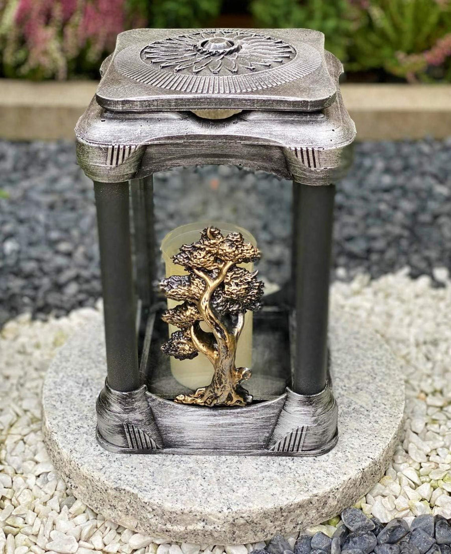 Grablampe Handmade NEU Baum-Motiv Grablicht Grabkerze Grabdekoration Grabschmuck Gartenlampe incl.Gr