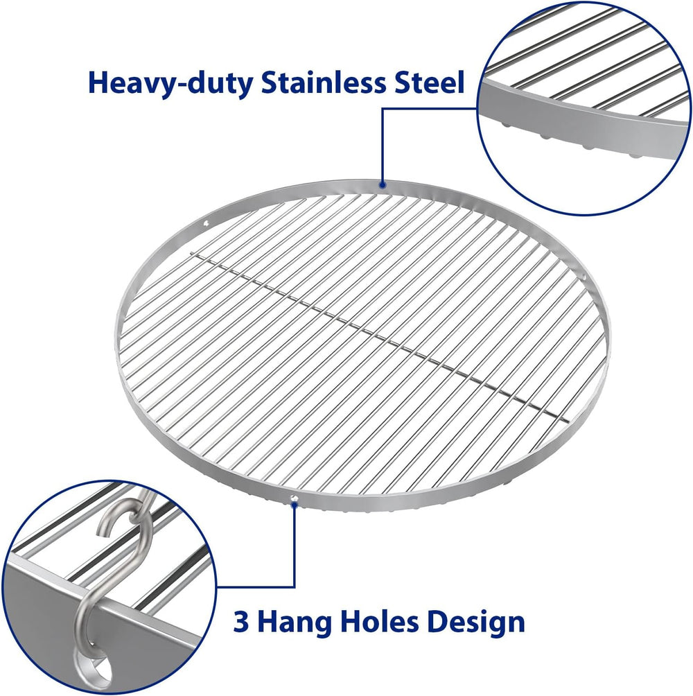 GriHero Grillrost Edelstahl Rund für Schwenkgrill, Ø 70 cm Grillgitter mit 3 Aufhängungsbohrungen fü