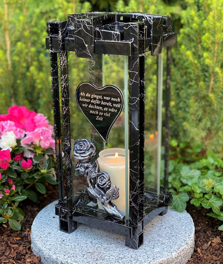 Garten Paradies Handmade Grablampe Laterne Grablicht 33 cm H. mit Beschriftung Grablicht Kerze Grabk