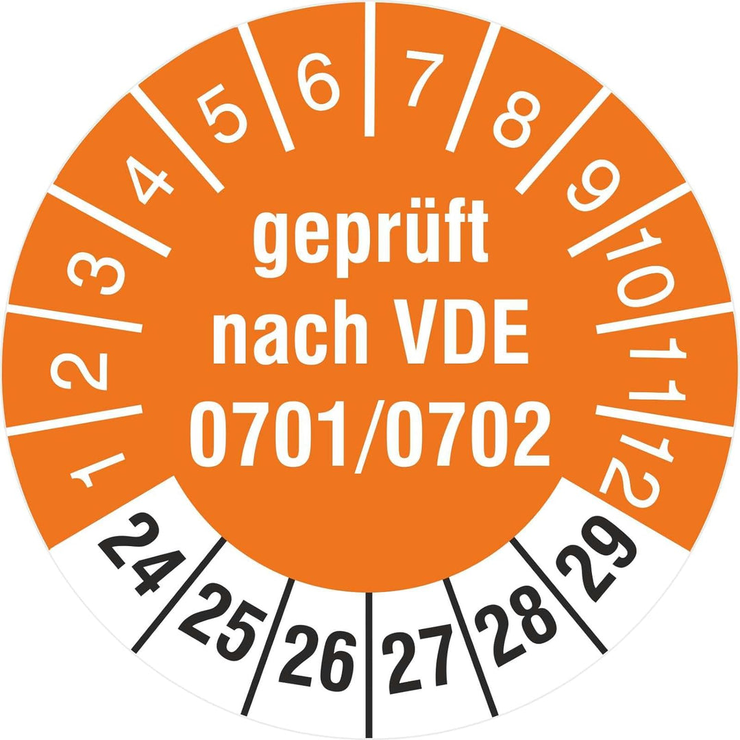 200 Prüfplaketten Geprüft nach VDE 0701/0702 18 mm 2024 bis 2029 Prüfetiketten 200 18mm Durchmesser,