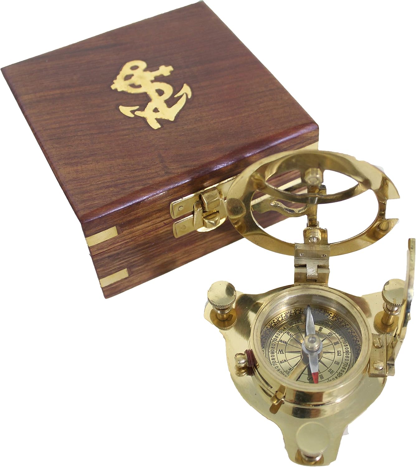 - ✅ Der Kompass mit Sonnenuhr wird in einer Holzbox mit Ankerinlay geliefert