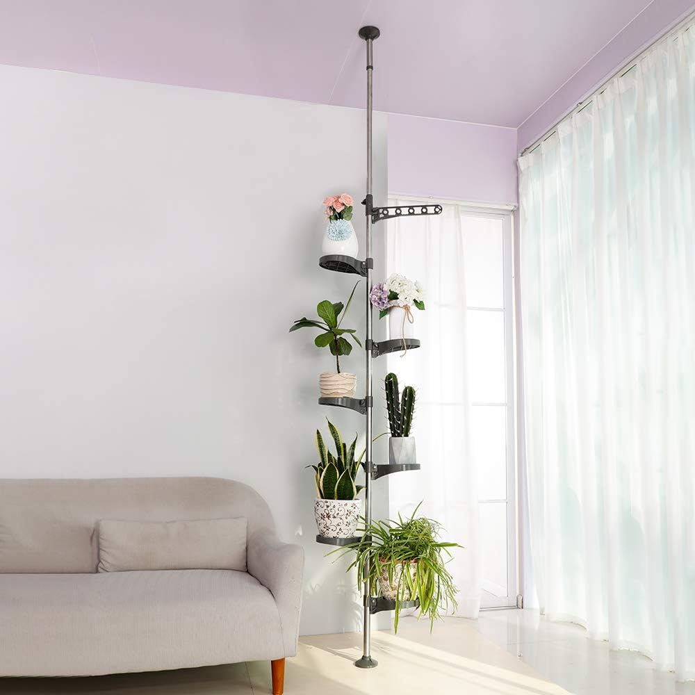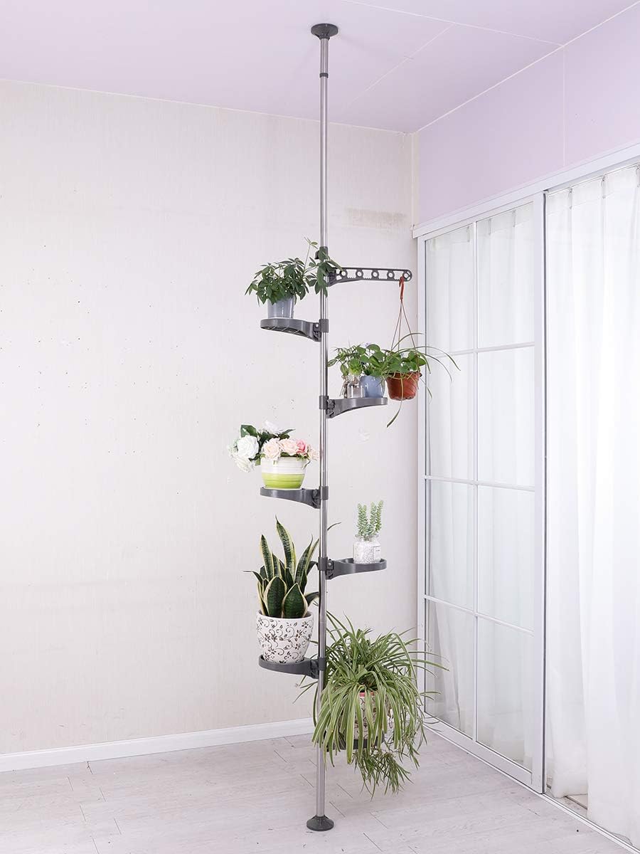 - Stehendes Aufbewahrungsregal: Mit 6 Ablagen und 1 Aufhänger, kann 6 Blumentöpfe, Blumentöpfe oder Badezimmerutensilien aufgestellt werden; der lange Kleiderbügel oben kann Kleidung oder hängende Pflanzen aufgehängt werden.
