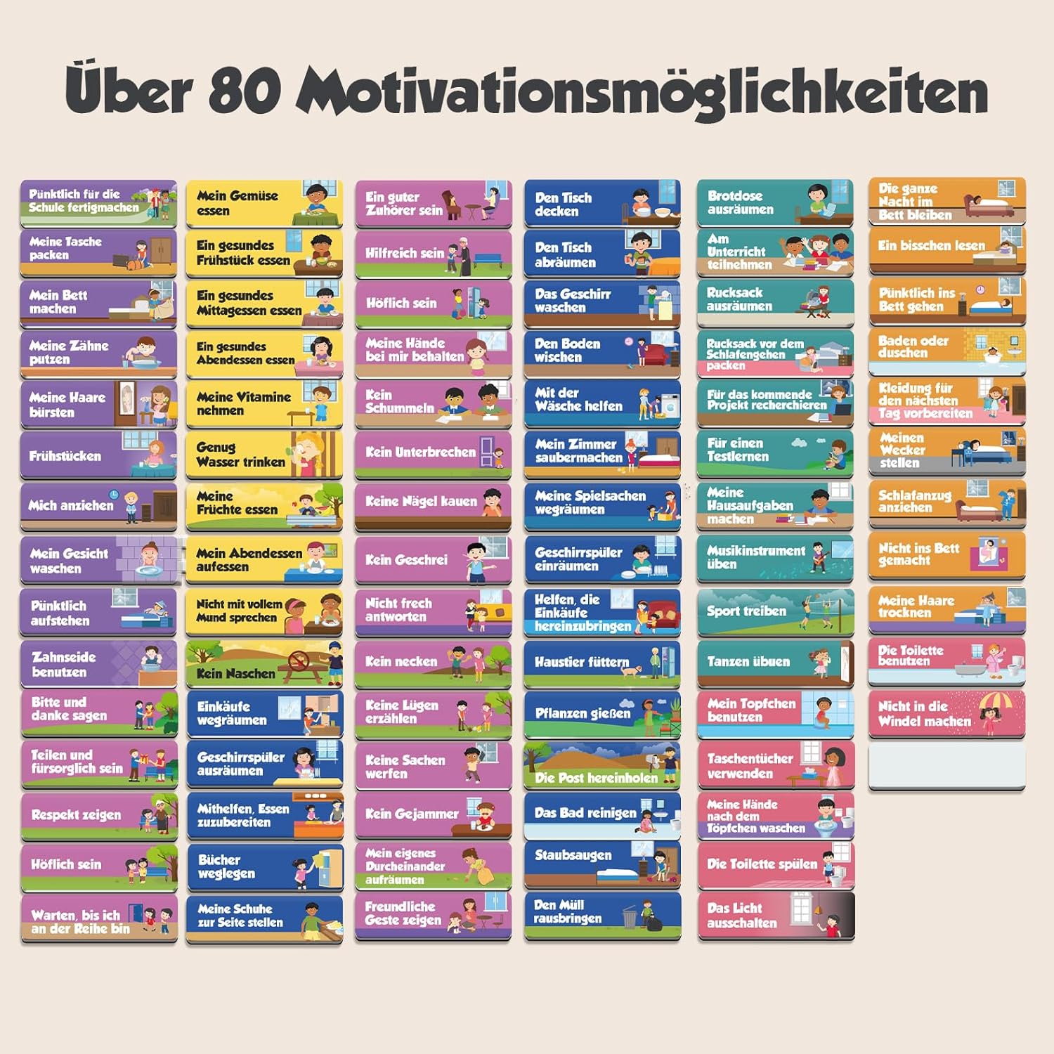 - 🌟 FÖRDERN SIE GUTES BENEHMEN – (Aktualisierte Version ) Geben Sie Ihren Kindern lieber ein positives Feedback, anstatt sie zu bestrafen und fördern Sie damit eine Verhaltensänderung und nützliche Routine. Freuen Sie sich sofort darüber, dass Ihr Kind einen Anreiz erhält, Gemüse zu essen und nicht mehr das Zähneputzen zu „vergessen“. Kinder lieben diese Methode.