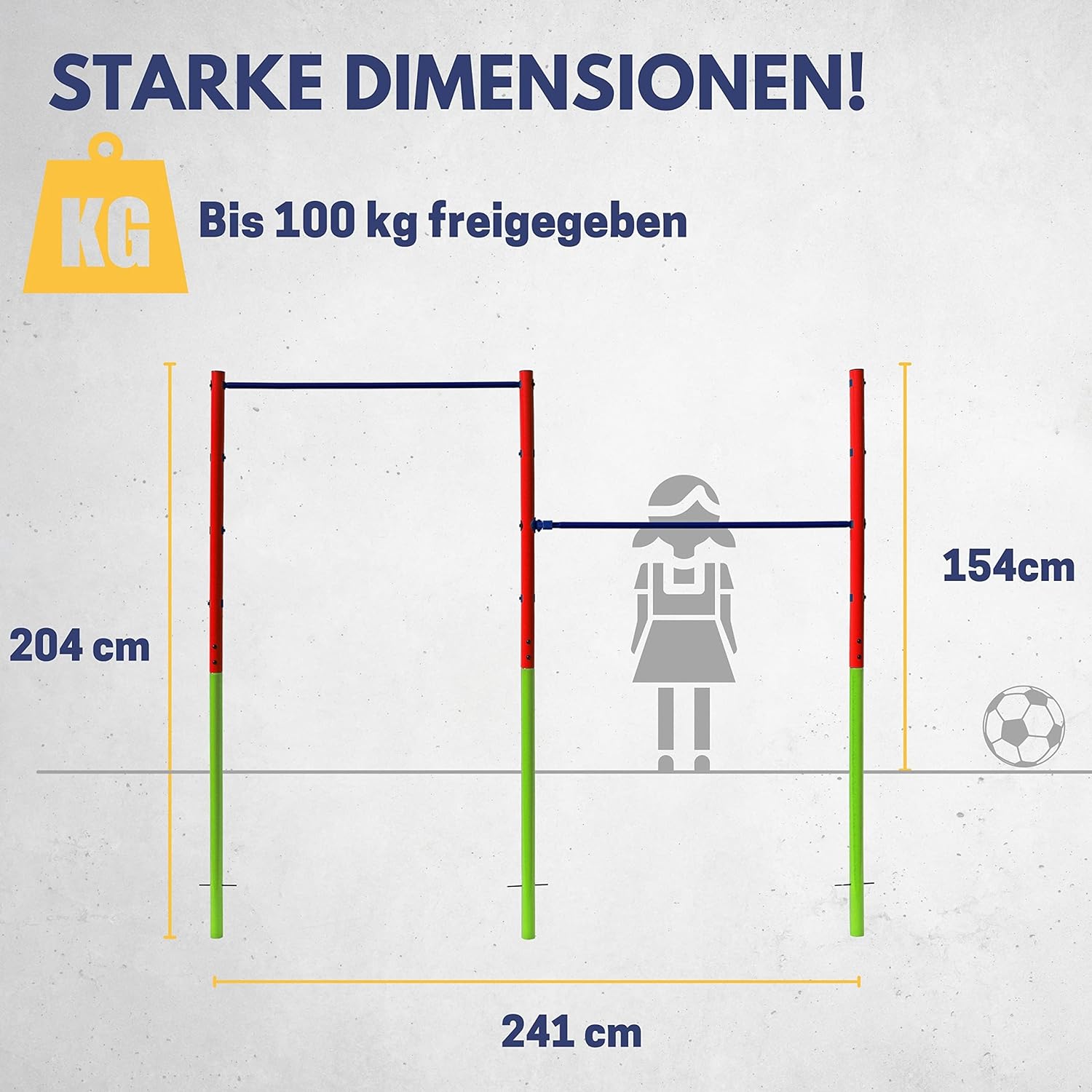 - TURNSTANGE GARTEN BIS 100 KG - Stabiles Turn-Reck aus Metall für Garten und Spielplatz I Reckstange Garten höhenverstellbar für langen Turnspass für Klein und Gross