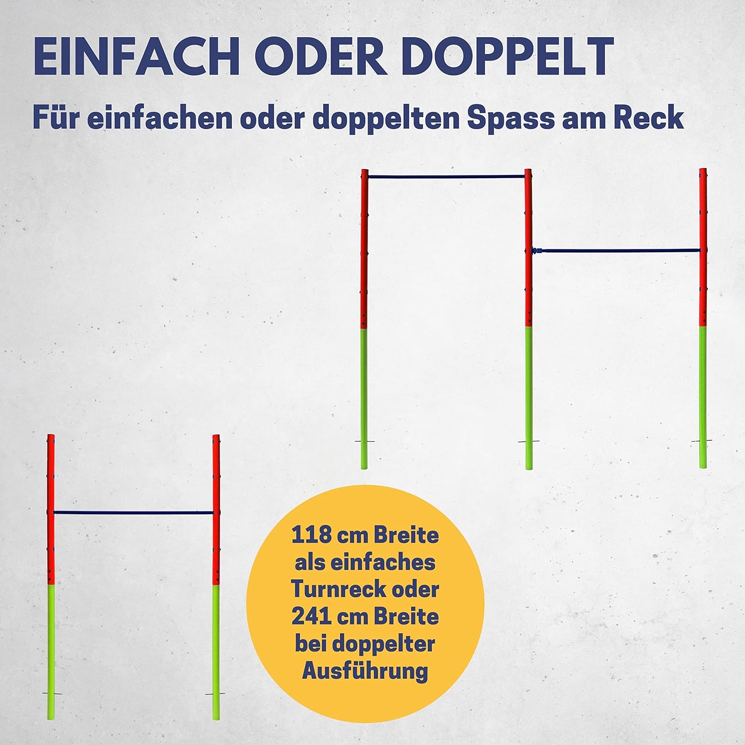 - RECK GARTEN IN 2 VERSIONEN - Ob als einfache Outdoor Reckstange oder als Doppelstange, mit diesem Reck für Garten und Spielplatz mach Aufschwung, Umschwung und Unterschwung richtig Spass