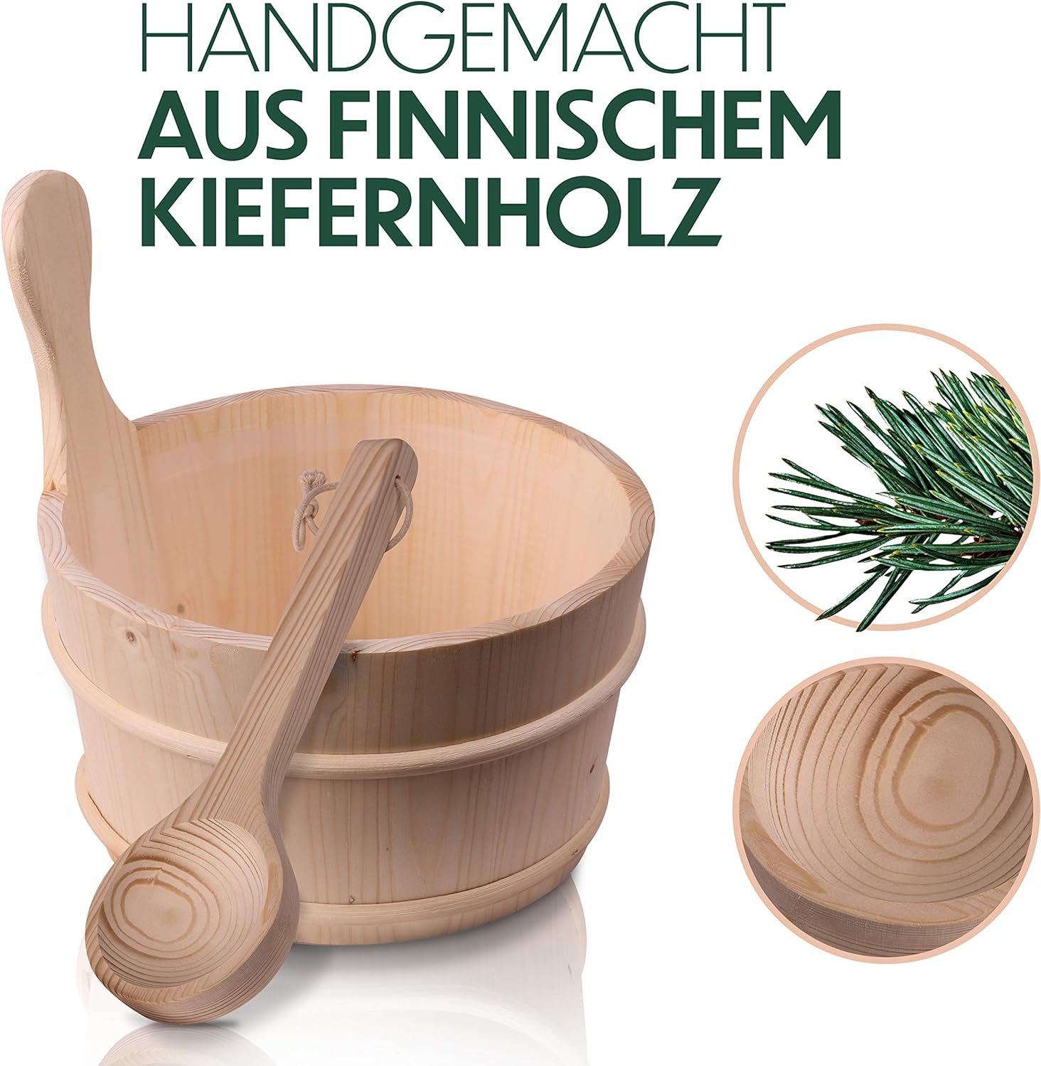 - ✅ TRADITIONELLES DESIGN - Der Aufgusskübel und die Kelle sind handgemacht und bestehen aus finnischem Kiefernholz, mit einer schönen natürlichen Maserung. Damit passen sie perfekt in das Ambiente deiner Sauna.
