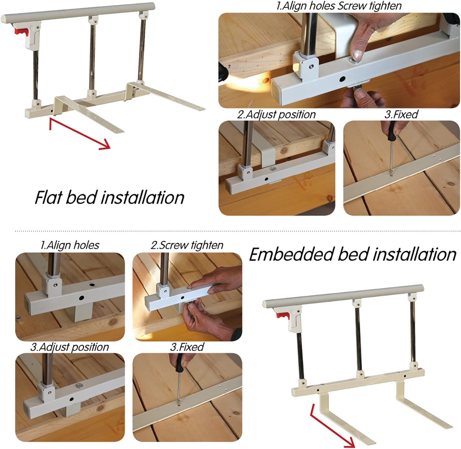 - EINFACHE INSTALLATION: 10 Minuten von der Kiste bis zum Bett. Das gesamte für die Installation der Schiene erforderliche Zubehör ist im Lieferumfang enthalten. Für eine stärkere Montage bereiten Sie bitte einen geeigneten Schraubendreher und einen geeigneten Schraubenschlüssel vor.