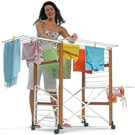 - 27 Meter Draht zum Aufhängen, dank der unabhängigen Seiten- und Vorderarme, die sich je nach Wäschemenge öffnen lassen