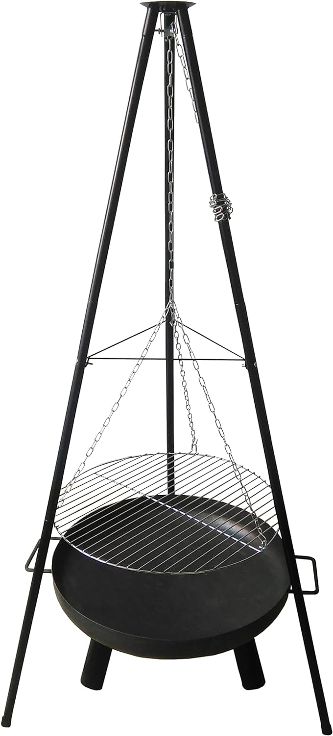 - Mit Kettenzug zum Regulieren der Grillhöhe
