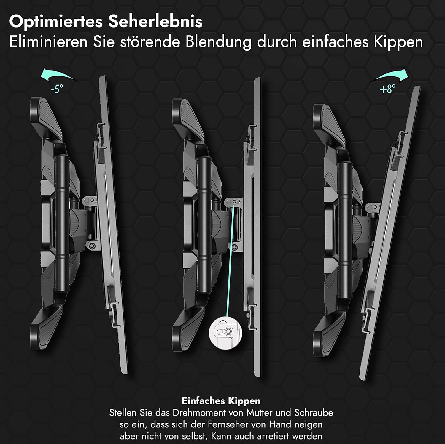 - ULTRASTARKER DOPPELARM - Unsere Doppelarmhalterung ist robust und BIEGEBESTÄNDIG und mit Druckscharnieren ausgestattet, um ein Verbiegungsrisiko zu vermeiden, wenn sie vollständig ausgefahren ist. Beste Verarbeitungsqualität auf höchstem Niveau mit