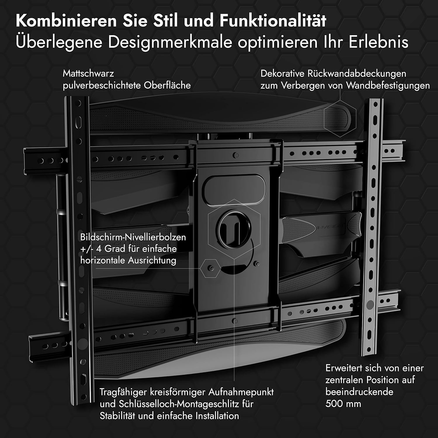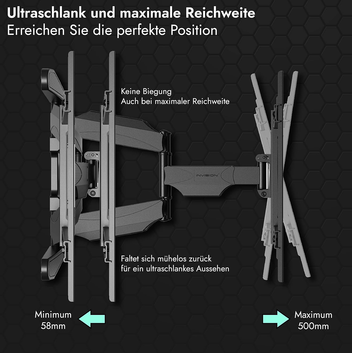 - ULTRADÜNN AN DER WAND & GROSSE REICHWEITE - Diese Halterung hat ein schlankes Design, das ermöglicht, Fernseher von 94 - 190 cm (37 - 75 Zoll) mit nur 58 mm noch näher an der Wand zu positionieren. Der Arm kann dann bis zu 500 mm ohne Biegen