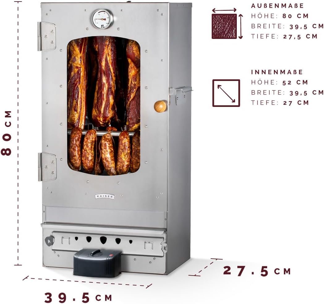 - 🍖HOCHWERTIG – Unsere Kaiser Räucherofen Werden Aus Hochwertigem Edelstahl In Eu Hergestellt. Geniessen Sie Den Geschmack Von Geräuchertem Fleisch Überall Und Lange Mit Unserem Kaiser Räucherofen. In Der Räuchertür Ist Ein Zuverlässiges