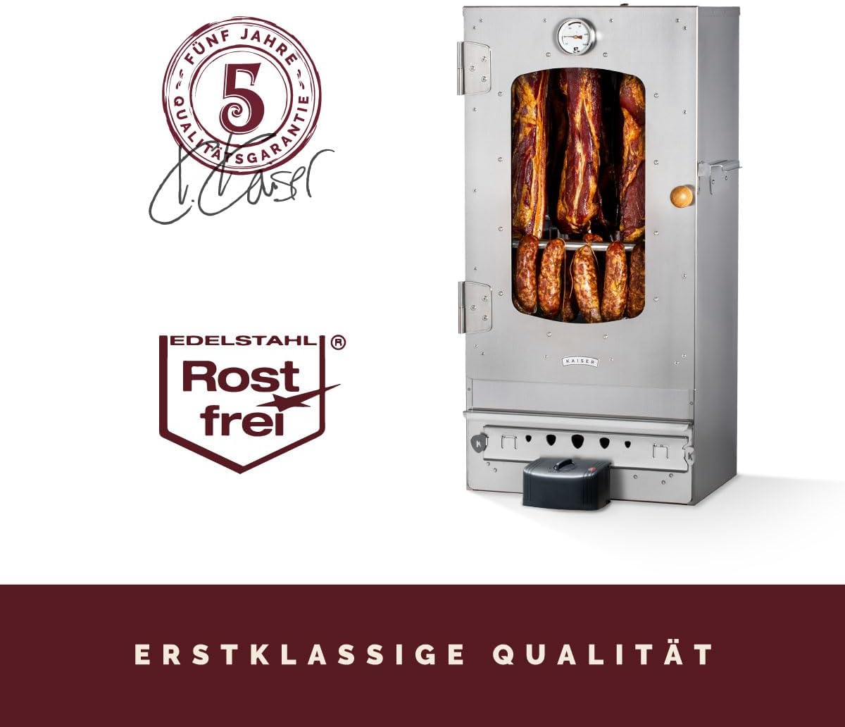 - 🍖GARANTIE – Edelstahl Hält So Manches Aus. Die Zufriedenheit Unserer Kunden Hat Bei Uns Höchste Priorität, Deswegen Bekommen Sie Auf Unsere Kaiser Räucherofen 5 Jahre Garantie!