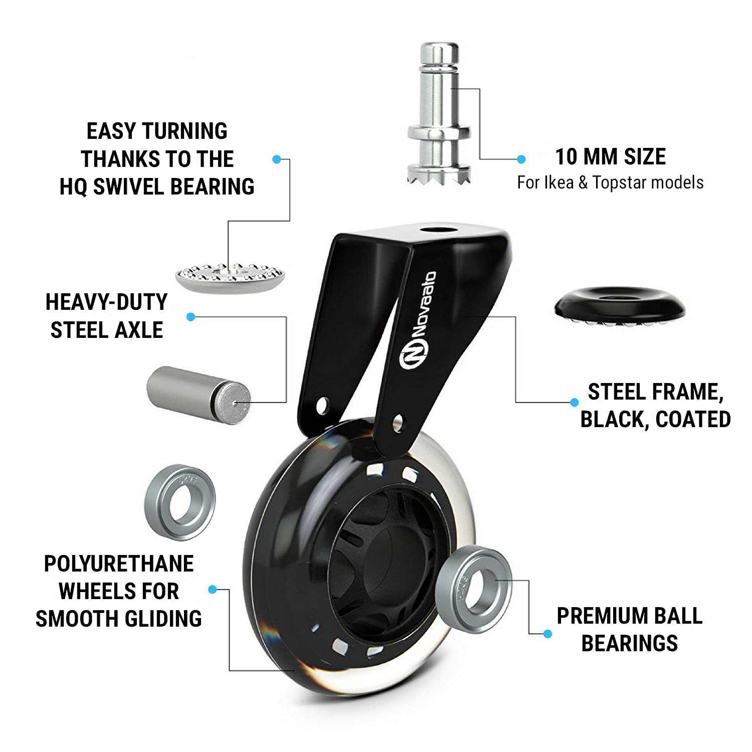 - UNIVERSELLE KOMPATIBILITÄT: Unsere Ersatzrollen passen perfekt zu den meisten gängigen Bürostühlen von Marken wie Ikea, Topstar und mehr. Einfache Montage ohne Werkzeug - ziehe die alten Rollen heraus und klicke die neuen einfach ein.