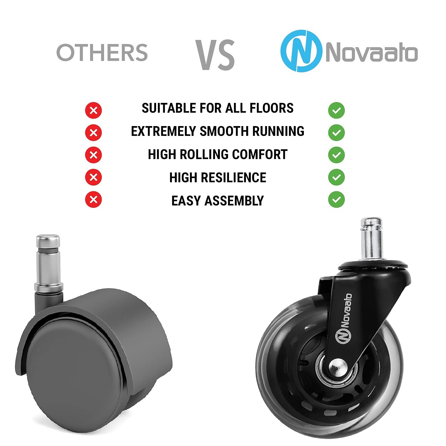 - LANGLEBIGE GUMMIROLLEN: Hergestellt aus hochwertigem Polypropylen und Gummi bieten unsere Bürostuhlrollen eine lange Lebensdauer und eine ideale Balance zwischen Haltbarkeit und sanfter Bewegung.