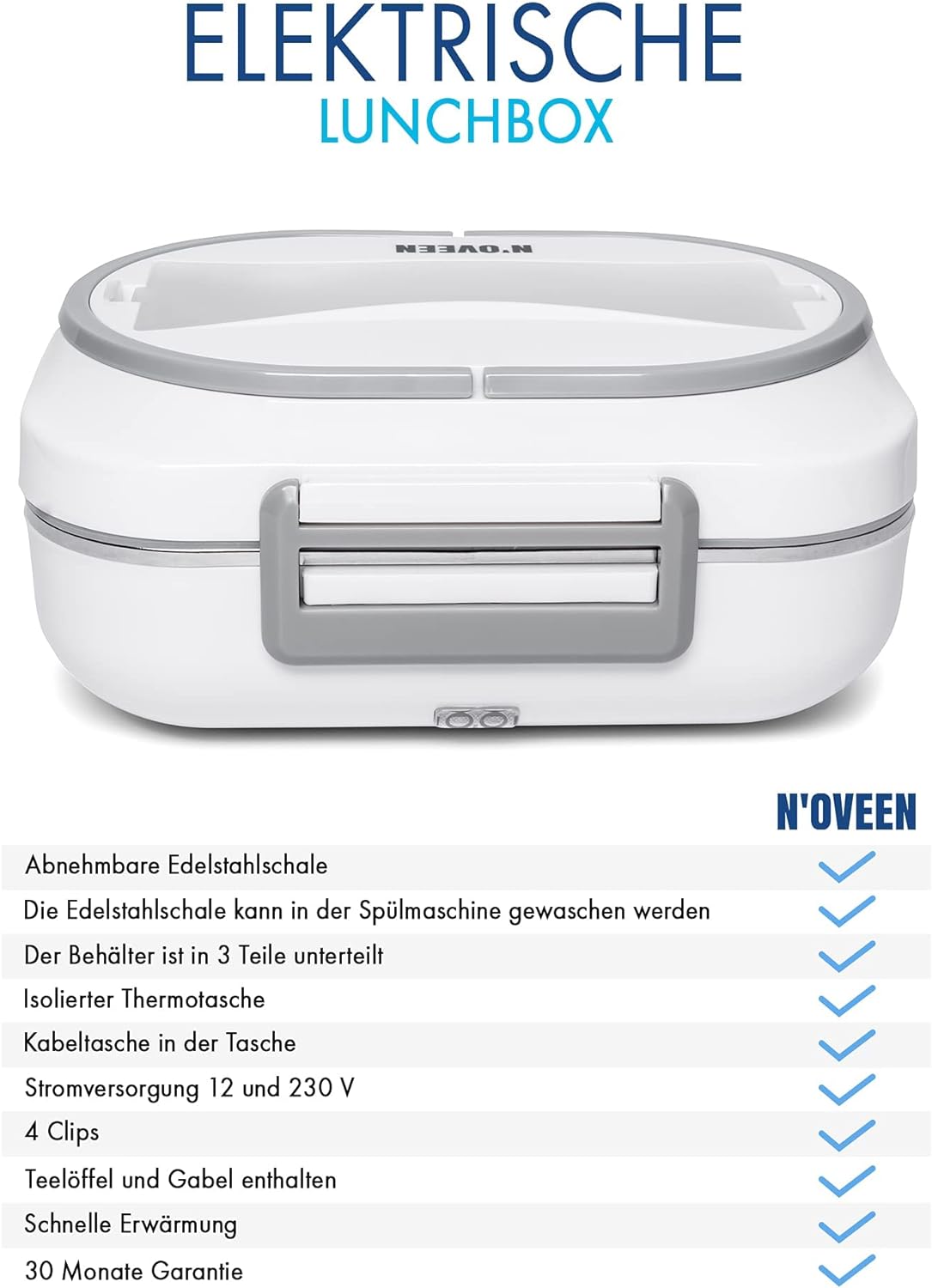 - ➤SICHERHEITSGEPRÜFTES PRODUKT: Alle unsere Warmhalteplatten für unterwegs durchlaufen einen strengen Qualitätssicherungsprozess, um Ihnen die bestmöglichen Produkte anbieten zu können. Alle Kunststoff Behälter sind getestet und BPA-frei. Unsere langjährige Erfahrung in der Branche ermöglicht es uns, qualitativ hochwertige Produkte herzustellen, daher bieten wir Ihnen eine kostenlose Garantieverlängerung bis zu 30 Monaten auf alle NOVEEN-Geräte