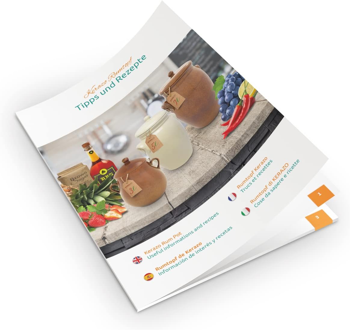 - Rumtopf 5,0 Liter , 29 x 23 cm (HxB) aus Steinzeug (hochwertige Keramik), Gewicht: 2,5 kg inkl. verschiedener Rezepte (z.B. Jahreszeiten-Rumtopf, Thai-style-Rumtopf)