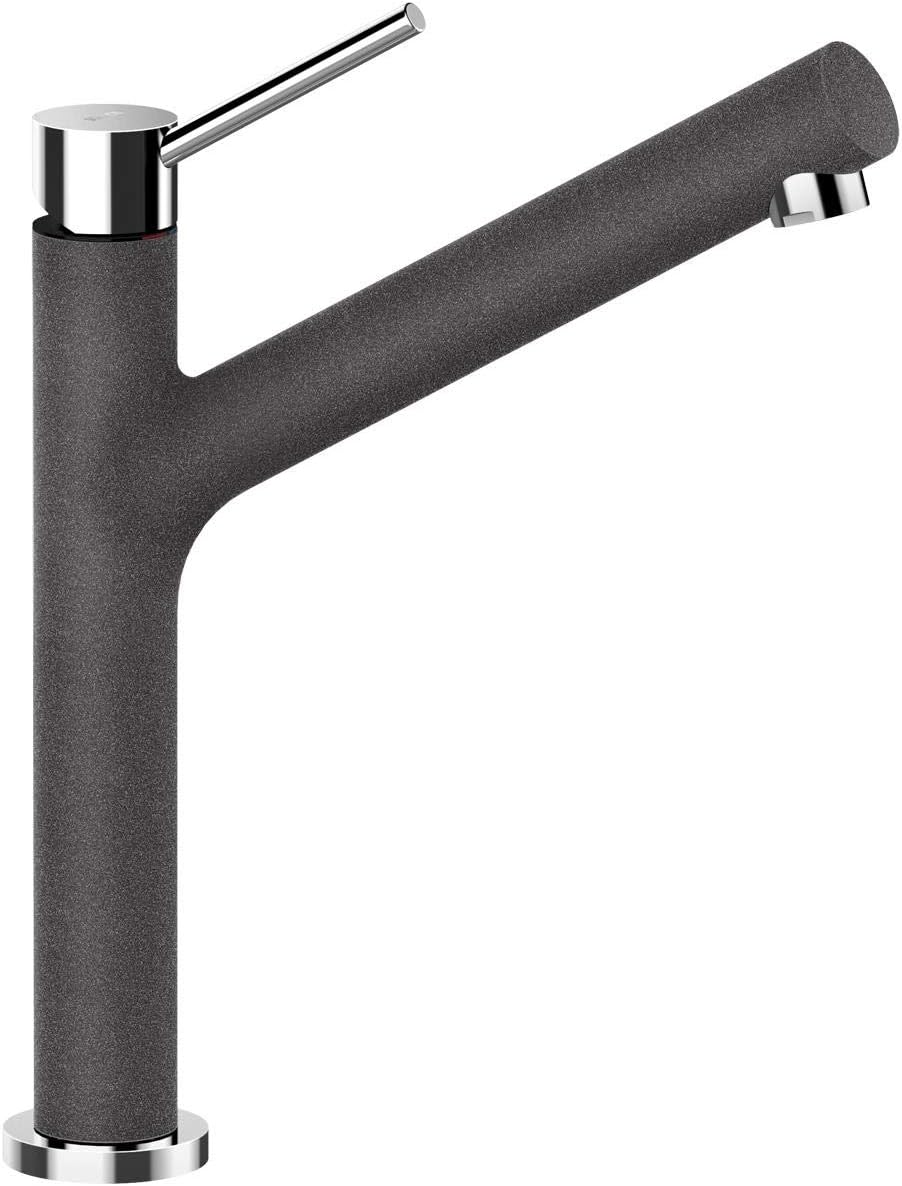 - QUALITÄT: Hochwertige graue Küchen-Armatur mit einem Armaturenmass von 293 mm Höhe und 194 mm Ausladung verfügt über einen festen Auslauf und einem Schwenkradius von 120°