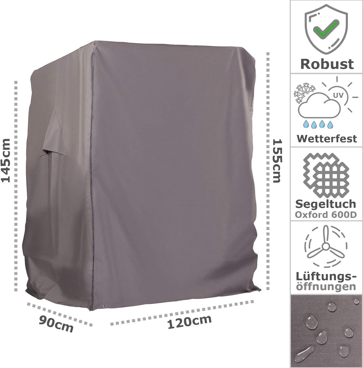 - ☀️ Premium Strandkorbhülle in Segeltuch-Qualität, 600D Oxford Gewebe | Farbe: grau