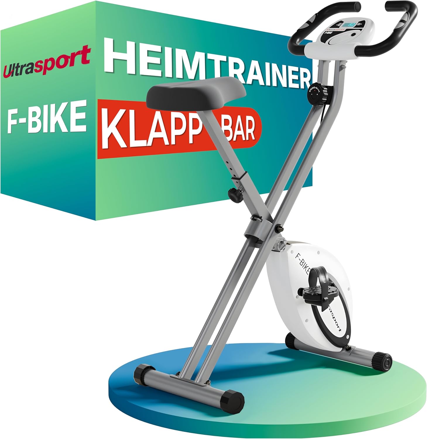 - Klappbarer Fahrrad-Heimtrainer, Hometrainer, Fitnessbike mit 8 Widerstandsstufen, schnell & leicht auf- und abzubauen - das Original, entwickelt vom F-Bike Marktführer Ultrasport