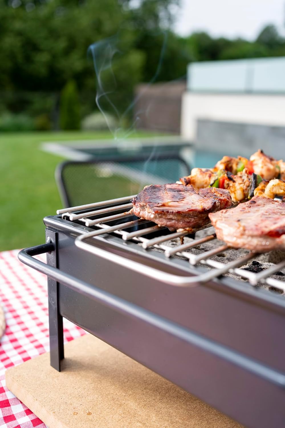 - Temperaturbeständig bis zu 600 °C. Nur Holzkohle verwenden. Nicht in ungelüfteten Bereichen verwenden.