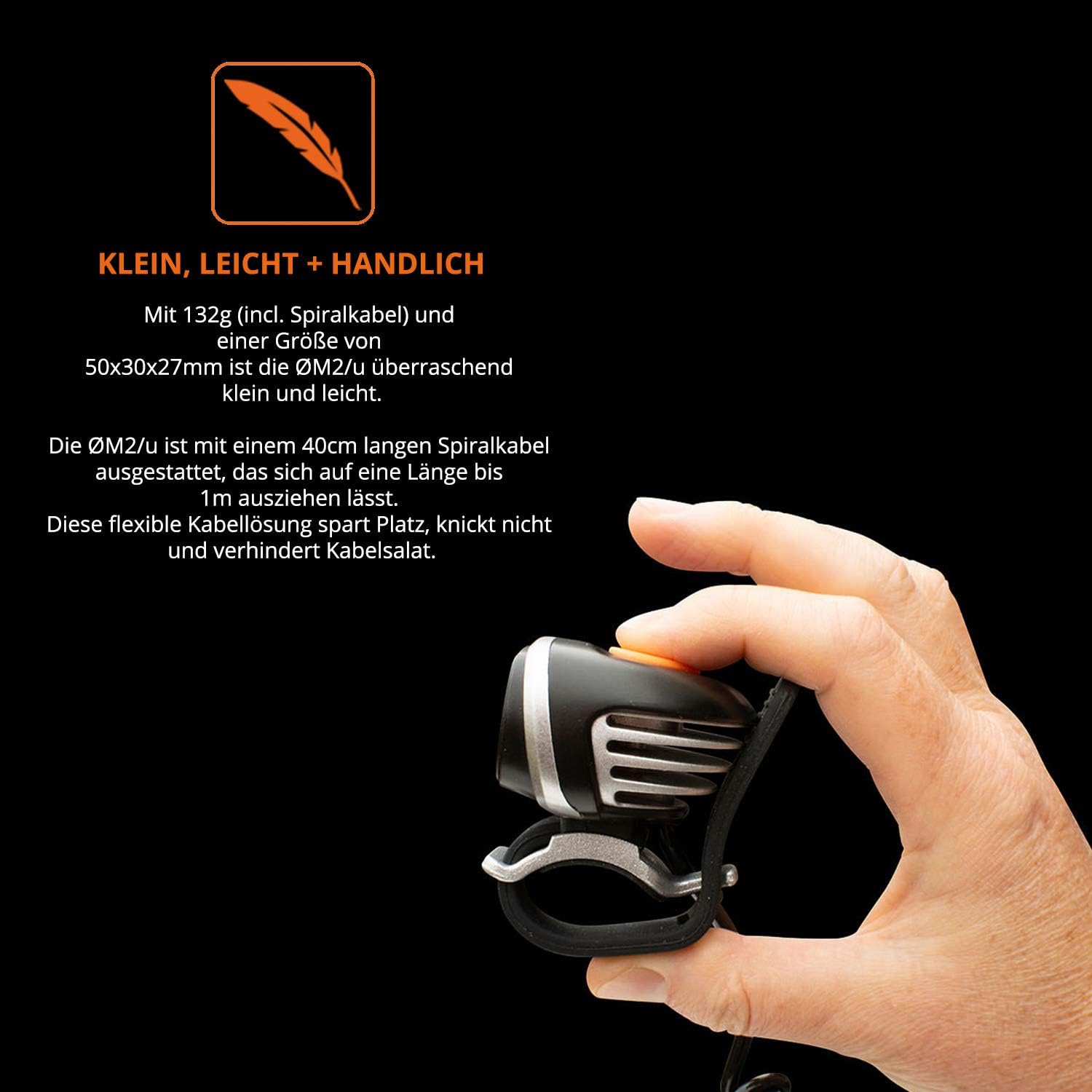 - ★ SEHR HELL + GUTE AUSLEUCHTUNG: Die ØM2/u ist mit effektiven 720 Lumen nach der ØM3/u die leuchtstärkste Outdoor- und Sportleuchte mit USB-Anschluss, die gegenwärtig auf dem Markt erhältlich ist. Andocken kannst du diesen