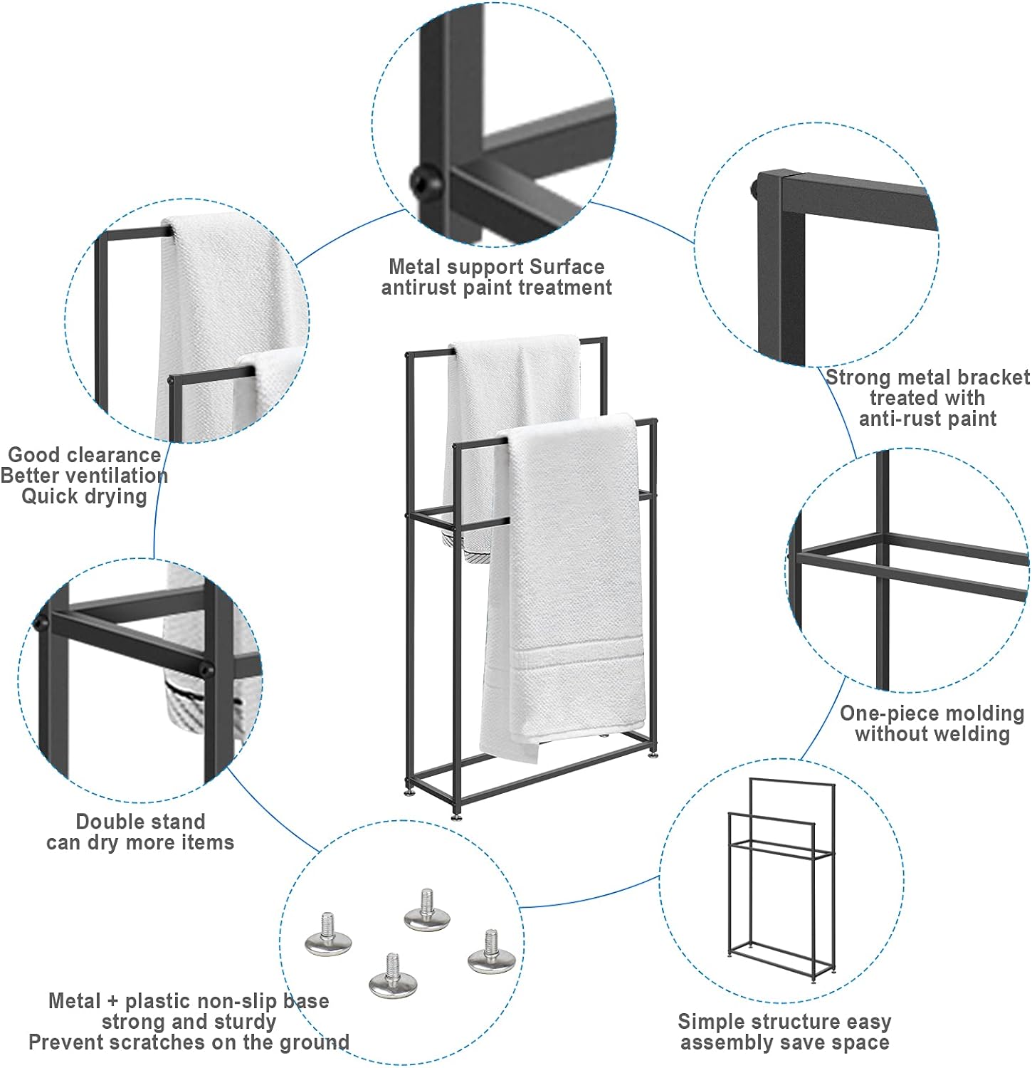 - FREISTEHENDER HANDTUCHHÄNGER: Handtuchhalter mit 2 Stangen zum Aufhängen und Trocknen von Handtüchern mit Fingerspitzen. Auch für den Einsatz in Waschküchen oder Küchen geeignet, um Handtücher in Reichweite zu halten.