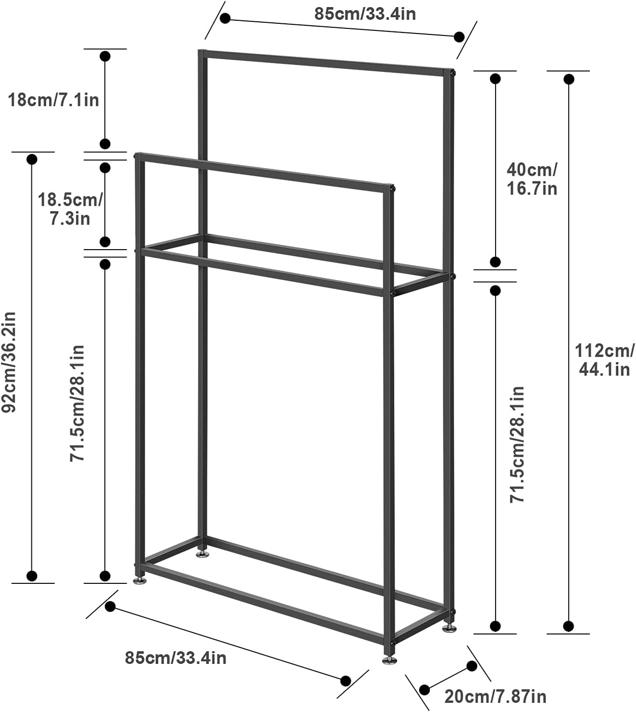 - IDEALE GRÖSSE: Der Handtuchhalter ist 110 cm gross, in 3 Grössen erhältlich. Klare Linien, elegantes schwarzes Finish, schaffen einen modernen Look als Ergänzung zu zeitgenössischen Dekoren.