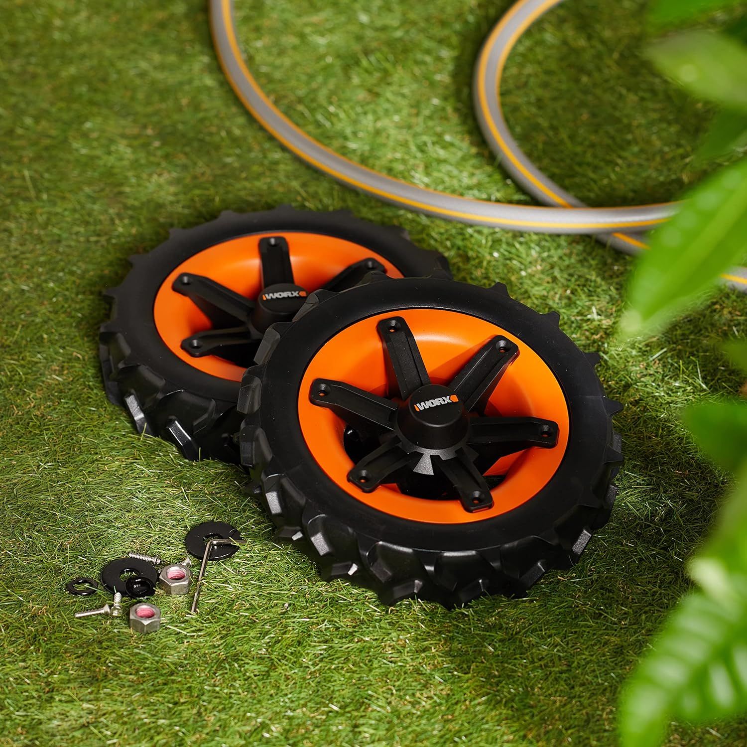 - Lieferumfang: WORX WA0953 Landroid All-Terrain-Räder (2 Räder) / Verbessern die Griffigkeit auf dem Rasen und schaffen Steigungen bis zu 20° bzw. 40 Prozent