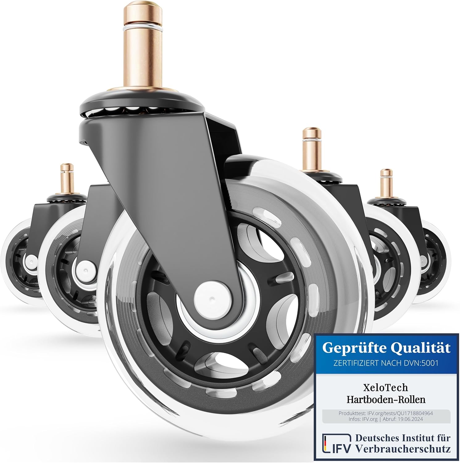 - [Design] - Diese Rollen werden Ihren Bürostuhl aufwerten, weil sie ein einmaliges und sehr modernes Design haben. Die Rollen sind ungebremst.