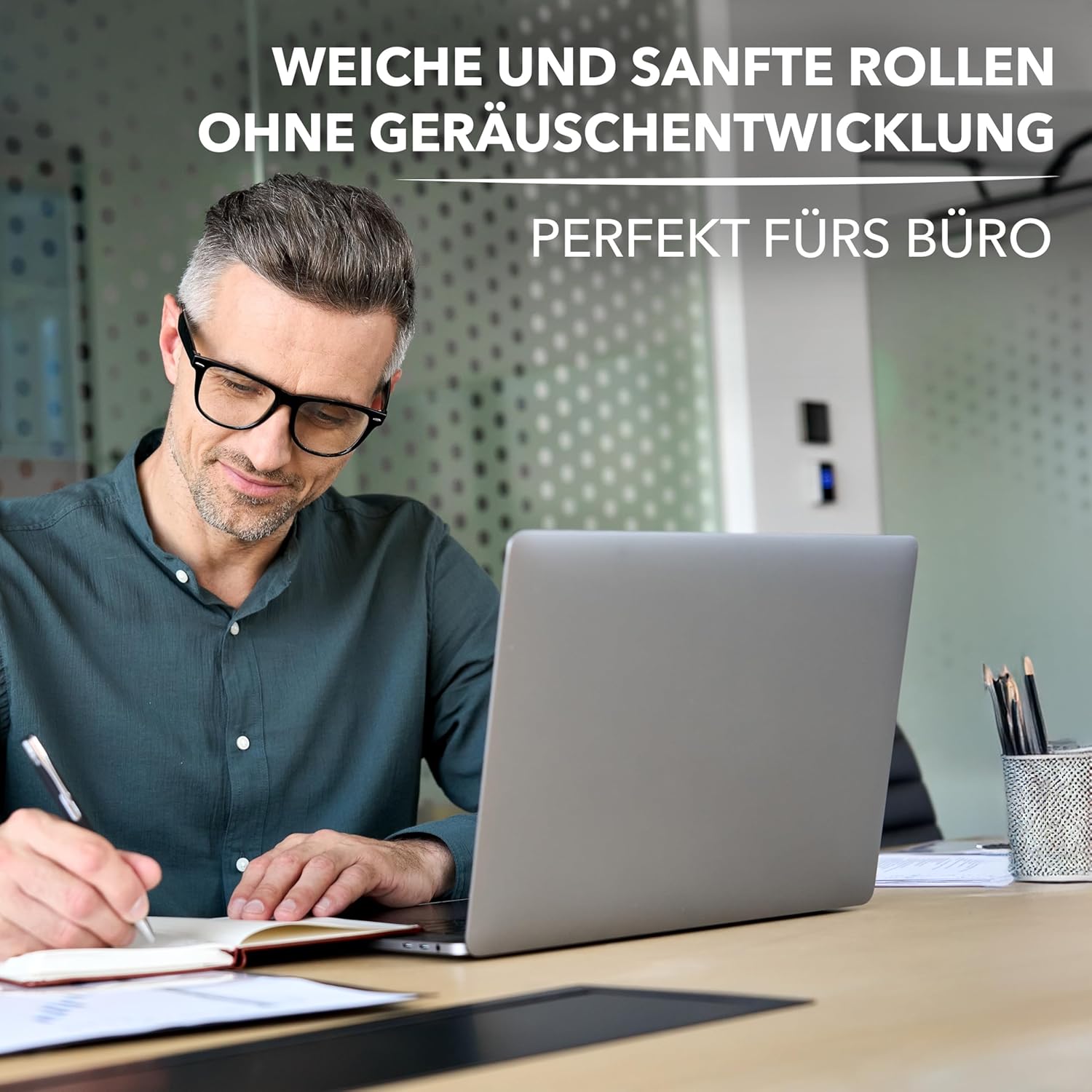 - [Geräuschlos, Laufruhig, Langlebig] - Gleiten Sie vollkommen ohne Geräusche auf Ihrem Office-Stuhl. Auch abends im Home-Office wird keiner mehr von Ihrer Arbeit gestört. Perfekt auch für Gamer, die gern nachts spielen.