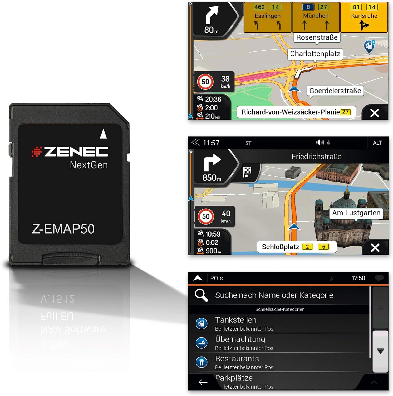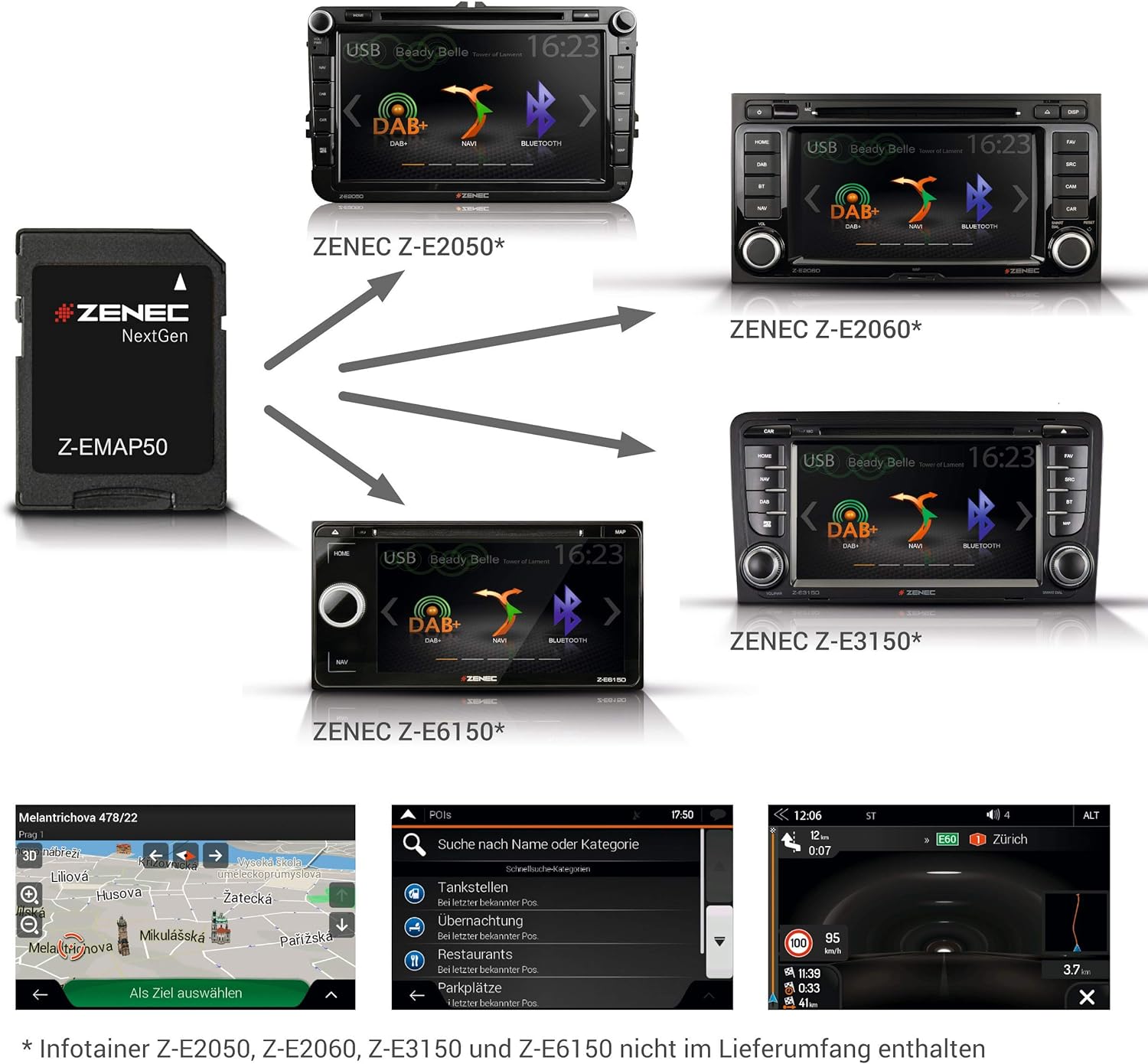 - Die Kombination aus Z-EMAP50 Navisoftwarepaket mit den ZENEC Infotainern ist eine perfekt abgestimmte Funktionseinheit mit diversen Vorteilen in der Praxis, z.B. Wiedergabe von Musik bei aktiver Routenführung oder Fortsetzung der Routenführung nach