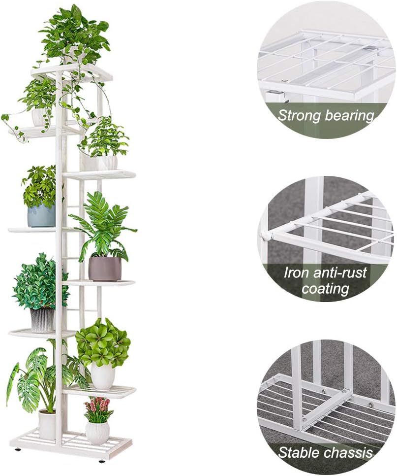 - 【Einfacher Stil】 8 Regale mit 9 Blumentopfhaltern (43 x 22 x 141 cm). Der minimalistische Stil eignet sich für die meisten Wohnaccessoires.