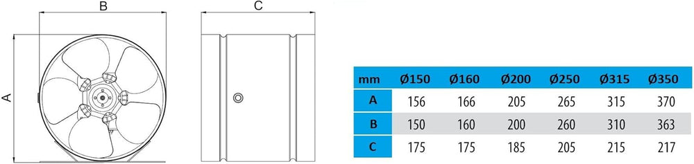 STAHL Axial Rohrlüfter Zuluft/Abluft Rohrventilator Lüfter. Grössen wählbar: 150, 160, 200, 250, 315