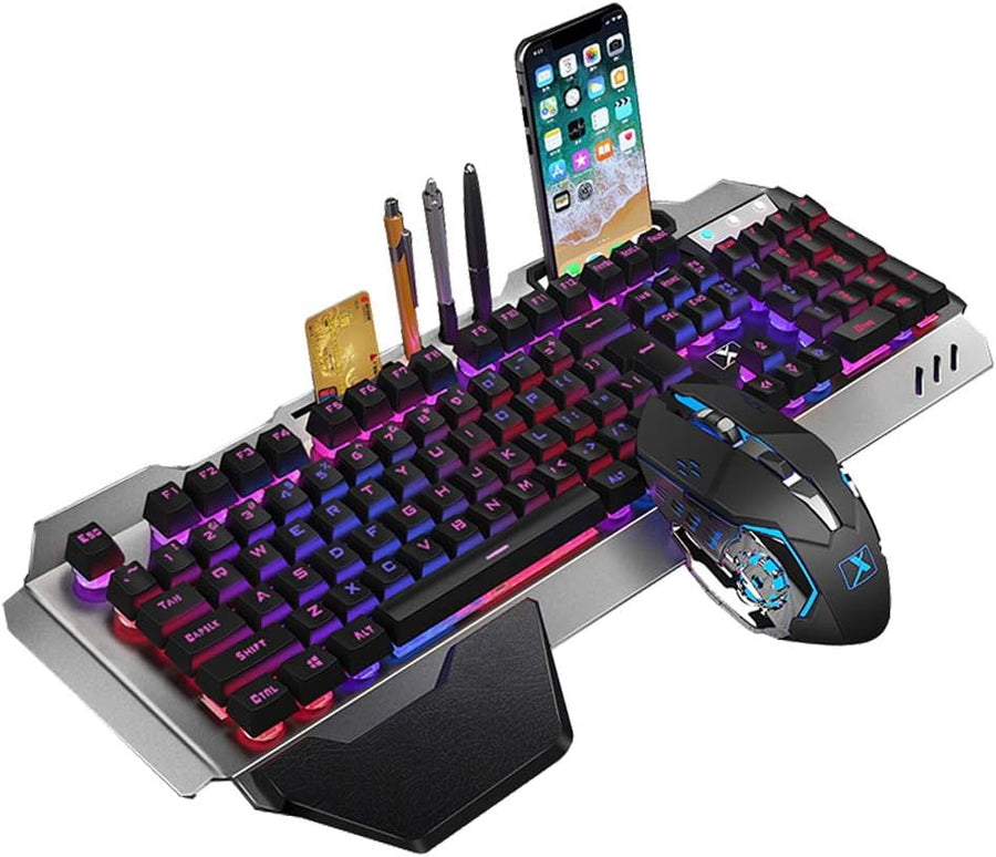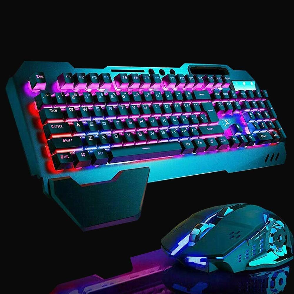 2,4G Mechanisches Gefühl Wiederaufladbares kabelloses Tastatur- und Mausset, 3000mAh Kapazität, LED-